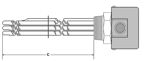 SS Models: Unregulated Steel Sheath With Steel 2-1/2" NPT Screw Plug Immersion Elements